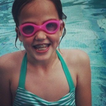 A chilly smile. It was a little cold for swimming lessons, but for me, it was perfect for sitting by the pool watching and chatting to a friend.